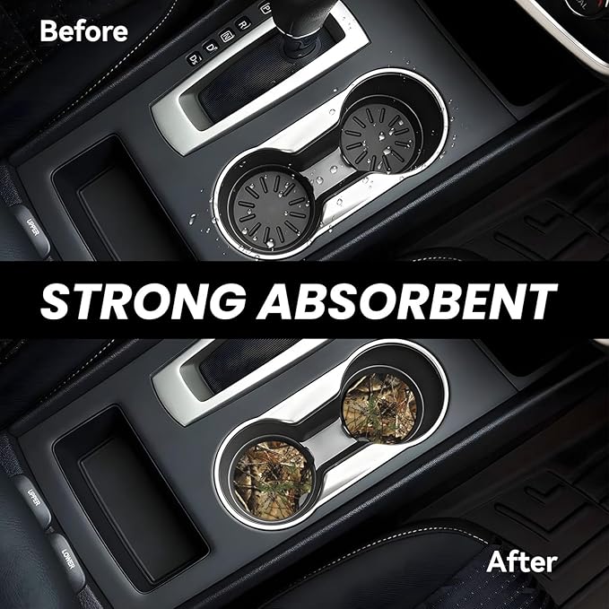 - One of the key features of these coasters is their exceptional absorbency. Crafted with advanced materials, they effectively soak up spills and condensation, keeping your cup holders clean and dry—no more worries about drips or stains in your car!