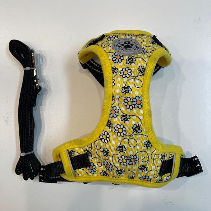 BEAUTYZOO Cat Harness and Leash Set for Walking Escape Proof, Neck Release Adjustable Harness for Kitten Puppy Small Medium Large Cats, Soft Cute Easy Control Small Cat Harness, Bee M