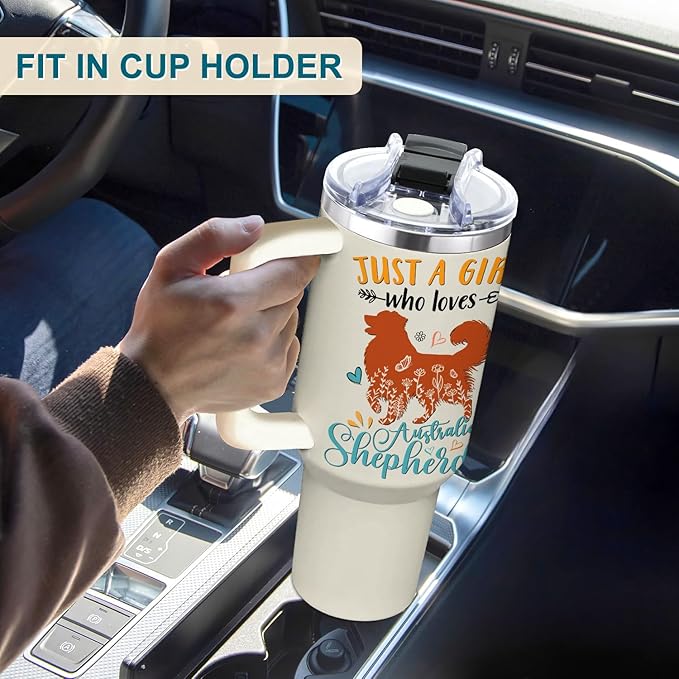 Australian Shepherd Gifts for Girls & Women, Christmas and Mother's Day Gifts for Australian Shepherd Lovers, Birthday Present Idea for Dog Owners, Dog Mom 40oz Tumbler with Handle & Straw