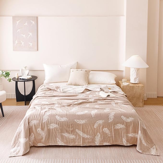 MEJU Feather Modern Fashion All Season Blanket Throw Decorative for Bed Sofa Couch 100% Cotton 3 Layer Soft Warm Reversible Bedspread Throw Blanket Bed Coverlet Sheet Grey F/Q 80 in x 90 in