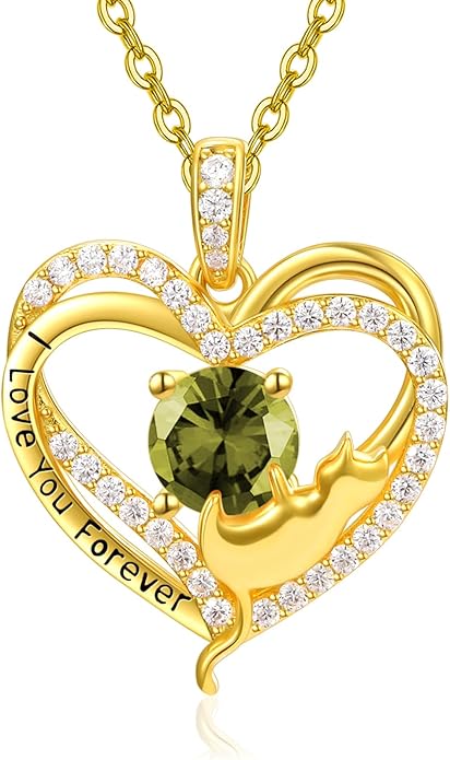 - 【Black Cat Necklace】The cute black cat embraces the peridot jewelry, symbolizing love and companionship; The edge is also engraved with 'Forever Love You', symbolizing love and commitment. A romantic birthstone necklace gift that is perfect for wives, girlfriends, mothers, grandmothers, daughters, and more.