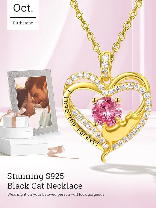 - 【Black Cat Necklace】The cute black cat embraces the tourmaline jewelry, symbolizing love and companionship; The edge is also engraved with 'Forever Love You', symbolizing love and commitment. A romantic birthstone necklace gift that is perfect for wives, girlfriends, mothers, grandmothers, daughters, and more.