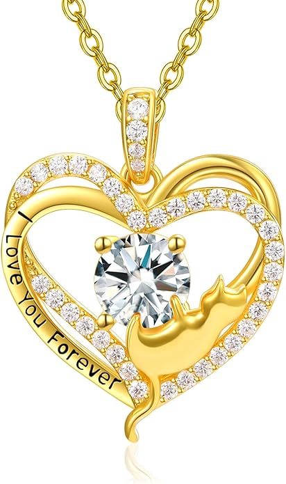 Birthstone Cat Necklaces,925 Sterling Silver Cat Necklace Heart Pendant for Women,Dainty Animal Jewelry for Her,Wedding Anniversary Birthday Gifts for Women Mom Grandma