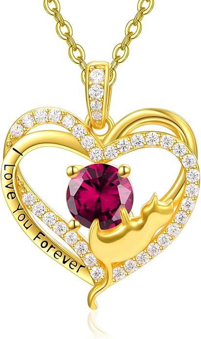 - 【Black Cat Necklace】The cute black cat embraces the ruby jewelry, symbolizing love and companionship; The edge is also engraved with 'Forever Love You', symbolizing love and commitment. A romantic birthstone necklace gift that is perfect for wives, girlfriends, mothers, grandmothers, daughters, and more.