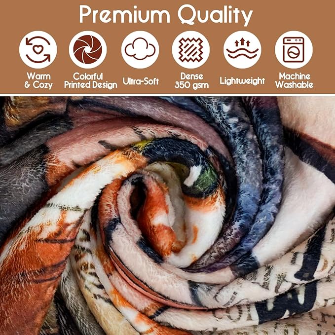 - High Quality: 100% polyester fleece blankets and throws which is ventilate,comfortable and durable plus it will no shedding,no pilling,no fading,no shrinking.Enjoy the comfort and warmth year-round with this premium fall plush throw.Blanket pattern printed on one side, white interior.These blankets are good to be birthday gifts for men gifts for women,room decor aesthetic for teen girls,boys,kids