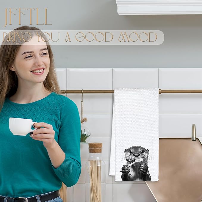 Funny Toothbrush Otter Bathroom Hand Towels, Otter Gifts Decorative Towels for Bathroom Washroom Restroom Decor, Kids Hand Towels, Otters Gifts for Women Men, 16x24 Inch