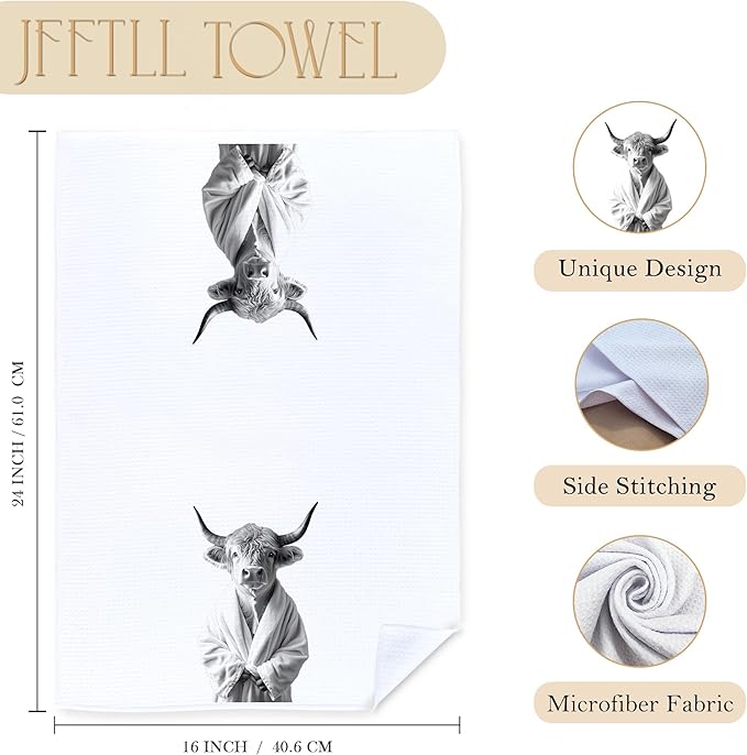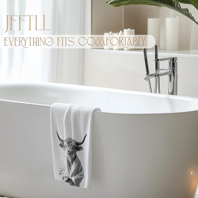 Funny Bathrobe Highland Cow Hand Towels for Bathroom Washroom Restroom Decor, Cow Lovers Gifts, Farmhouse Western Bathroom Hand Towels, 16x24 Inch
