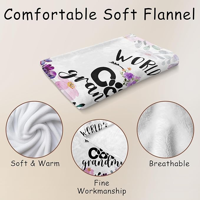 HIWX Cat Grandma Throw Blanket, Cat Grandma Gifts, World's Best Cats Nana Mother's Day Blanket for Couch Bed, Pet Lovers Throw Blankets Gifts for Women, Cats Nana Themed Blanket,50x60 Inches