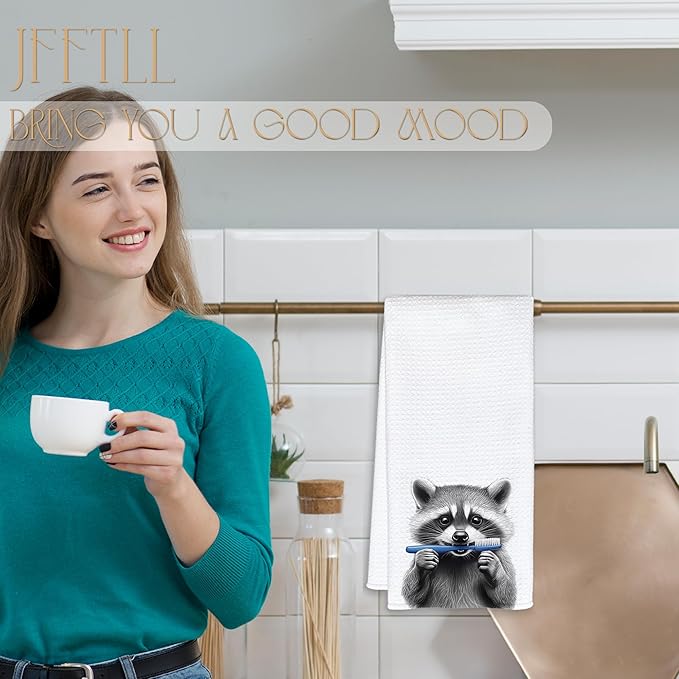 Funny Toothbrush Raccoon Bathroom Hand Towels, Raccoons Gifts Decorative Towels for Bathroom Washroom Restroom Decor, Kids Hand Towels, Gifts for Raccoon Lovers Women Men, 16x24 Inch