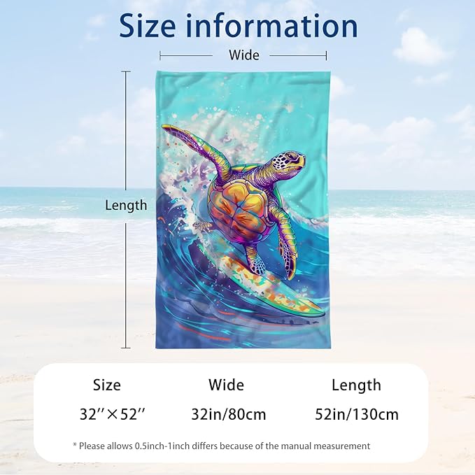 WZOMT Microfiber Turtle Beach Towel Oversized, Funny Sea Turtle Surfing Blue Ocean Pool Towel, Quick Dry Animal Print Bath Towel, Soft Absorbent Towels for Swim Travel Yoga Sports 32x52 Inch