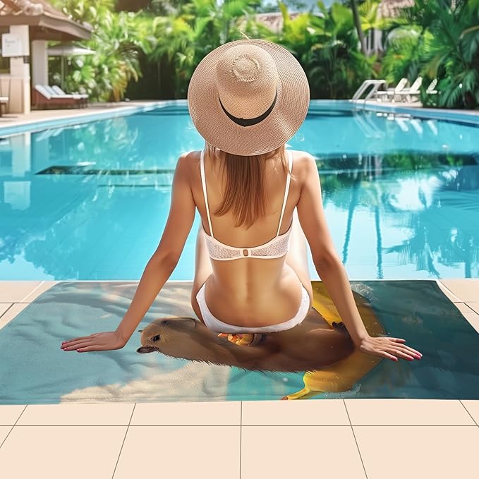 WZOMT Cute Capybara Beach Towel, Capybaras Gifts for Capybaras Lovers, Funny Capybara Eating Pizza On A Banana Boat Print Bath Towels, Soft Quick Dry Swim/Surf/Pool Towel Oversized 32x52 Inch