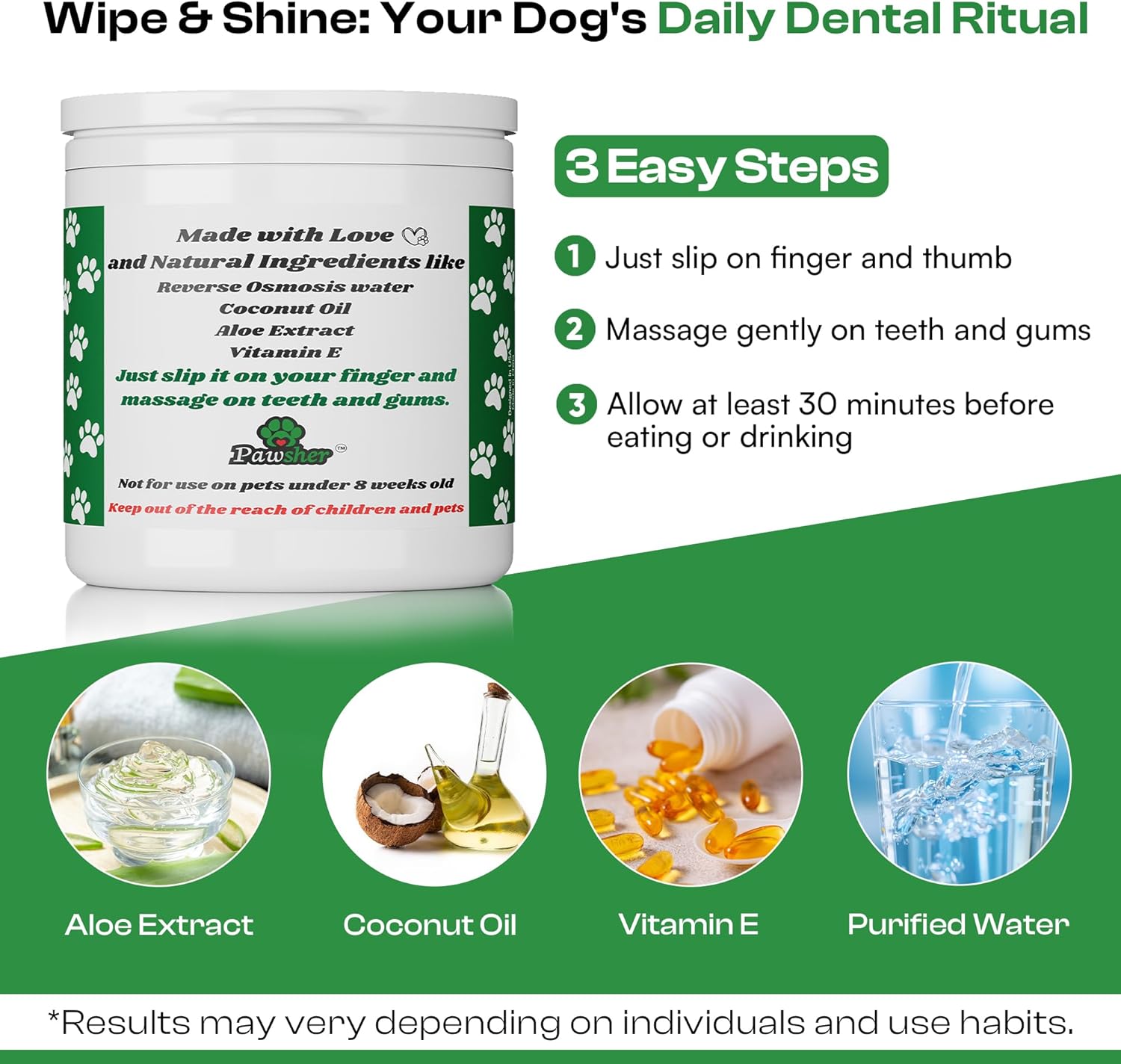 - NATURALLY SAFE & GENTLE DOG DENTAL CARE: Made from Natural products like Coconut Oil and Aloe Extract, these wipes are perfect even for your dogs teeth care. Alcohol-free, paraben-free, and fragrance-free.