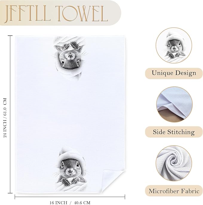 Squirrel Lover Gifts Bathroom Hand Towels, Funny Bathrobe Squirrel Hand Towels for Bathroom Washroom Restroom Decor, 16x24 Inch