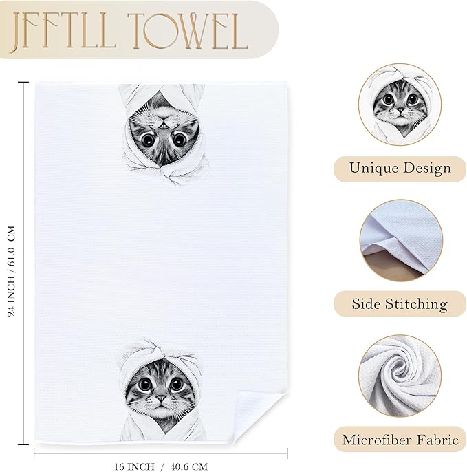 Funny Bathrobe Cat Bathroom Hand Towels, Cat Mom Lady Lovers Gifts for Women, Cute Kitty Kitten Hand Towels for for Bathroom Washroom Restroom Decor, 16x24 Inch