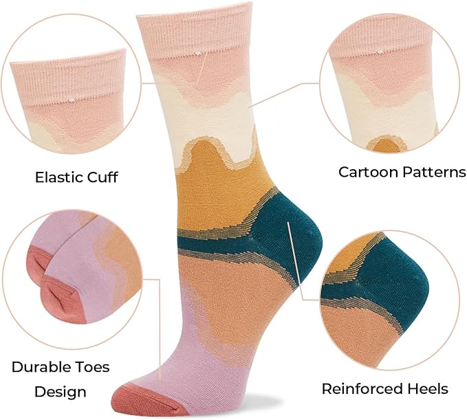 Benefeet Sox Cute Crew Socks for Women Girls Novelty Funny Patterned Socks Colorful Kawaii Cotton Casual Calf Sock 5 Pairs