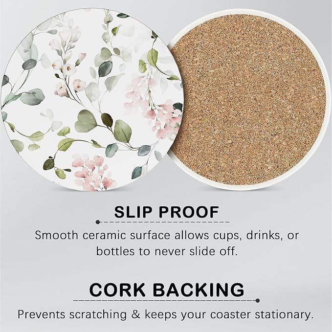 - Superior Absorbency & Protection: Crafted with a cork base, these coasters offer exceptional absorbency, effectively soaking up condensation and spills. The non-slip design protects your surfaces from scratches and ensures your tabletops remain dry and clean, making them ideal for any drink.