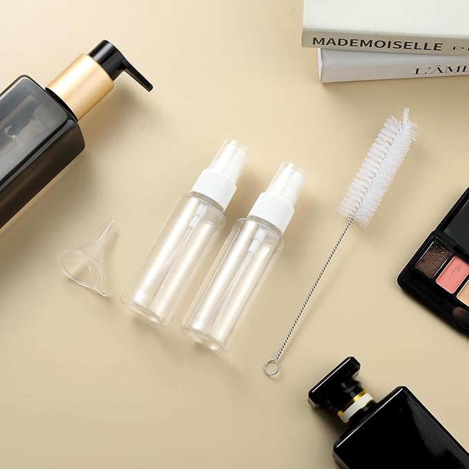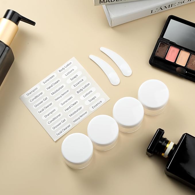 - Useful Travel Accessories: This is a oversize assortment of travel containers in a useful zip case. ( Come in 2 pcs Larege 6oz & 2pcs 3oz Travel Bottles + 4 Travel Jar s+ 2 Spray Bottles + 2 Scoopers + 1 Funnel + 1 Clean Brush + 1 Page Label + 1 Clear Toiletry Bag ) Multiple ones allow you take along different beauty products and toiletries according to your requirement