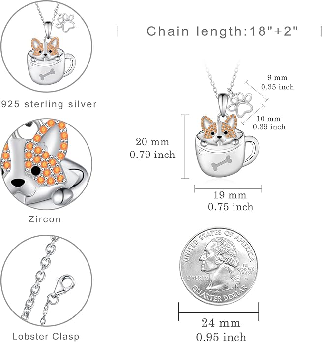 - Corgi Necklace for Women Size: Pendant: 19mm*20mm (0.75inch*0.79inch). Chain length: 18 inch+2 inch extension chain. The corgi gifts for corgi lovers is lightweight design for everyday wear.
