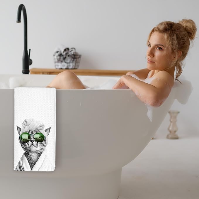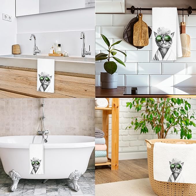 Funny Sunglasses Cat Hand Towels for Bathroom Kitchen, Cat Lover Mom Lady Gifts Bathroom Hand Towels, Funny Kitten Decorative Kitchen Dish Towels Drying Cloth, 16x24 Inch