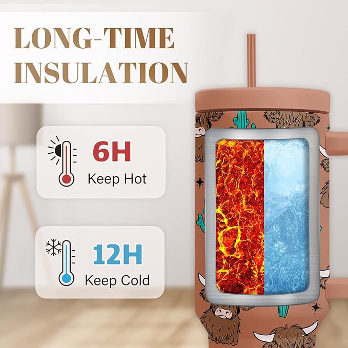 - Big Capacity: With a generous 40oz capacity, this highland cow tumbler is a perfect gift for keeping your drinks hot or cold for hours, ensures you stay hydrated without frequent refills. Whether it's a cow gift for friends or birthday gifts for him, it can be the best choice