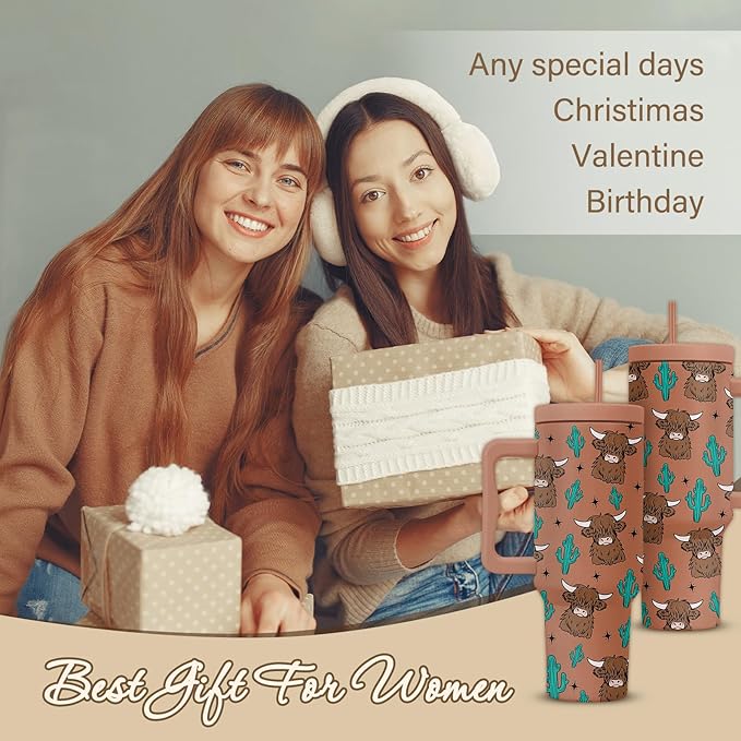 - Perfect Cute Gifts: This stainless steel tumbler is an ideal tumbler gift for cowboys, featuring Khaki highland cow and cactus designs that making the tumbler more lovely. Whether for birthdays, Christmas, or friend's anniversary, this tumbler combines practicality with meaningful aesthetics, making it a best present for him