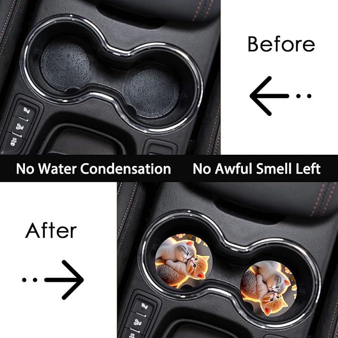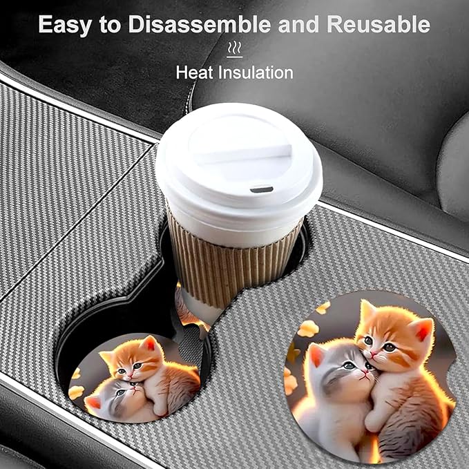 - ✅Cat Design: Upgrade your ride with our Cat Themed Car Coasters! Perfect for Cat lovers gifts, these durable,non-slip coasters add a some cute touch to your vehicle. Easy to clean, they’re a must-have for road trips and daily commutes. Embrace the legend today!