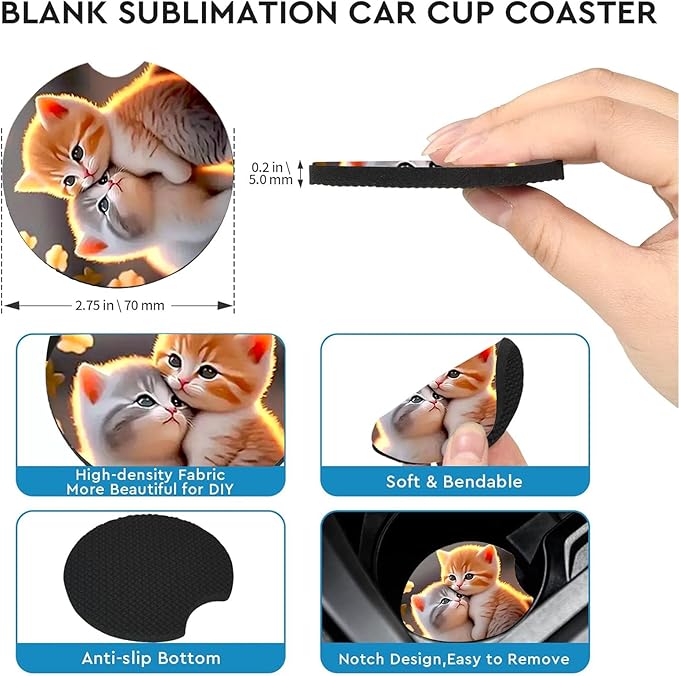 - ✅ Perfect Fit for Any Ride: Measuring 2.75 inches in diameter, these coasters are designed to fit most car cup holders, whether you drive a compact car, SUV, or truck. No more wobbly cups on bumpy roads!