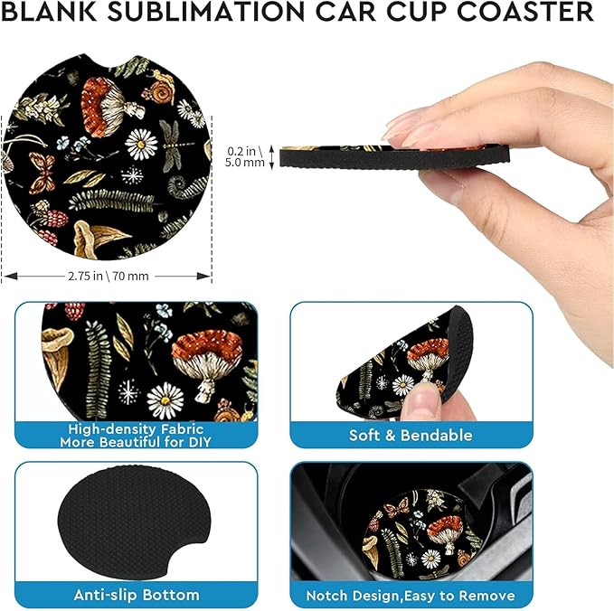- ✅ Perfect Fit for Any Ride: Measuring 2.75 inches in diameter, these coasters are designed to fit most car cup holders, whether you drive a compact car, SUV, or truck. No more wobbly cups on bumpy roads!
