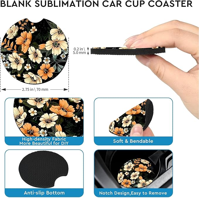 - ✅ Perfect Fit for Any Ride: Measuring 2.75 inches in diameter, these coasters are designed to fit most car cup holders, whether you drive a compact car, SUV, or truck. No more wobbly cups on bumpy roads!