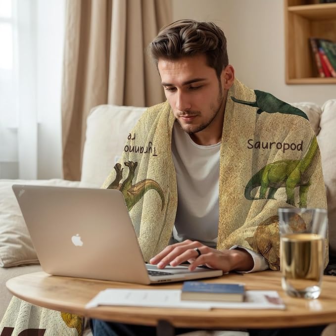 - 【Dinosaur Lovers Gifts】This perfect dinosaur blankets can be given to your dinosaur lover, Jurassic movie lover, friends, family or others. It is also the first choice for various holiday gifts, such as Easter, Halloween, Christmas, Thanksgiving, Father's Day, Mother's Day, Valentine's Day, birthdays, etc. It is the perfect gift for a crazy dinosaur themed party or fantasy animal world theme, it brings joy to the people around, decorate the child's dinosaur land