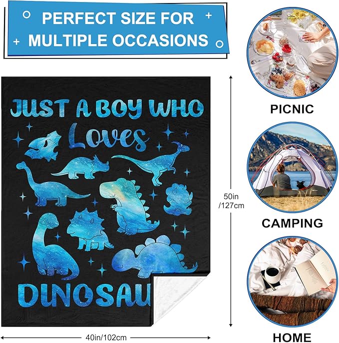 Dinosaur Blanket for Boys, Dinosaur Gifts for Boys, Dino Throw Blanket & Room Decor for Kids, Just a Boy Who Loves Dinosaurs, Best Birthday Gifts for Dinosaurs-Lover Blankets 40"X50"